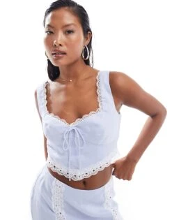 Forever New Petite Top & Lace Detail Maxi Skirt Co-ord In Baby Blue